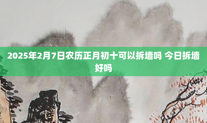 2025年2月7日农历正月初十可以拆墙吗 今日拆墙好吗在黄历中,“坏垣”指的是拆墙的行为,那2025年2月7日拆墙好不好?2025年2月7日是拆墙吉日良辰吗?卦无忧为您提供拆墙吉日吉时,可收藏查看哦!当日适合拆墙根...2024-12-22