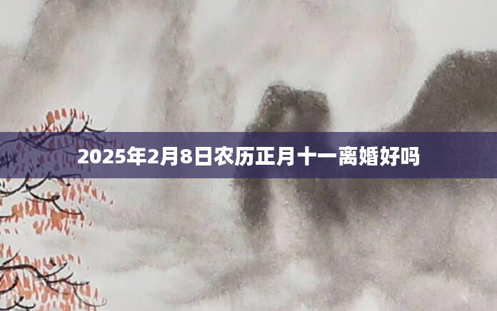 2025年2月8日农历正月十一离婚好吗当日不适合离婚根据该日的黄历信息分析可得,2025年2月8日为黑道日,就民间说法来看,黑道日不利行事,若这一日离婚,可能会有不好的影响,但黑道日并不是完全忌讳离...2024-12-22