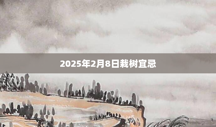 2025年2月8日栽树宜忌当日不适合栽树根据该日的黄历信息分析可得,2025年2月8日为黑道日,就民间说法来看,黑道日不利行事,若这一日栽树,可能会有不好的影响,但黑道日并不是完全忌讳栽...2024-12-22