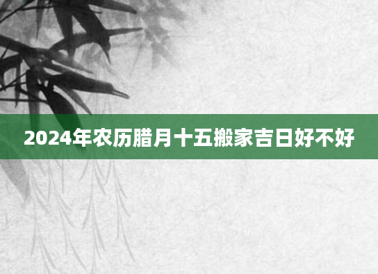 2024年农历腊月十五搬家吉日好不好导语:在生活中,我们经常会遇到一些大事。搬家就是其中之一。当我们在搬进新房的时候,我们的心情是很愉悦的。为了今后的生活顺顺利利的,一定要选择一个合适的日子来进行...2024-12-22