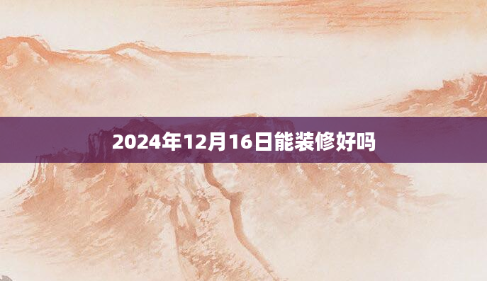 2024年12月17日可以装修吗人们希望选择一个吉祥的装修日,这是因为在美好的日子做事可以使事情完成的更完整和成功,如果我们想得到好的运气与祝福的话,那么我们需要提前做好准备,这样我们将来的生...2024-12-12