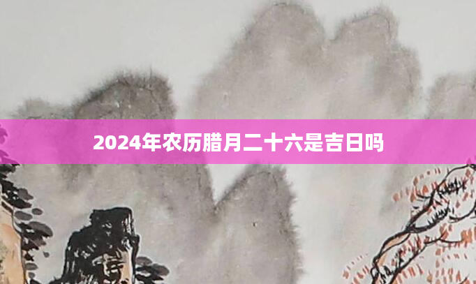 2024年农历腊月二十六是吉日吗每个人都希望自己每件事情能够得到一个不错的结局,因此当遇到重大的事情的时候,大家就需要选择吉利的时间来进行,在好的时辰做一些好事,会给人带来积极的影响。在凶日做...2024-12-22