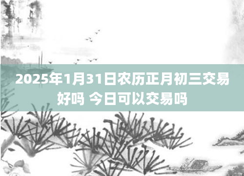 2025年1月31日农历正月初三交易好吗 今日可以交易吗交易指的是投资、买卖等交易之事,今日适合交易吗?2025年1月31日交易好不好?卦无忧为您提供交易吉日黄道吉日,祝您一切顺利!当日不适合交易根据该日的黄历信息分...2024-12-09