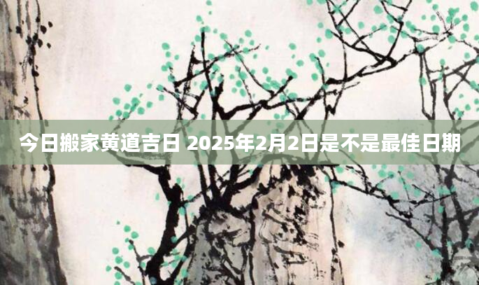 今日搬家黄道吉日 2025年2月2日是不是最佳日期当日适合搬家根据该日的黄历信息分析可得,2025年2月2日为黄道日,黄道日即是民间的黄道吉日,吉日办事可一顺百顺,对事情有着正向积极的促进作用,因此2025年2...2024-12-09