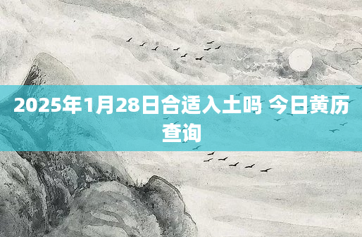 2025年1月28日合适入土吗 今日黄历查询我国传统认为,人去世以后要“入土为安”,那么2025年1月28日入土日子好吗?卦无忧为您提供入土黄道吉日,欢迎查看收藏哦!当日不适合入土根据该日的黄历信息分析可...2024-12-09