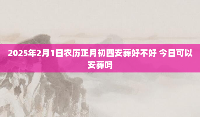 2025年2月1日农历正月初四安葬好不好 今日可以安葬吗我国传统认为,人去世以后要“入土为安”,所以对安葬是极为讲究的;2025年2月1日适合安葬吗?2025年2月1日几点几分适合安葬?卦无忧为您提供安葬择日查询,希...2024-12-09