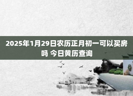 2025年1月29日农历正月初一可以买房吗 今日黄历查询买房是人生中的大事,选择一个合适的吉日买房是很有意义的,那么2025年1月29日买房日子好吗?卦无忧为您提供买房黄道吉日,欢迎查看收藏哦!当日不适合买房根据该日...2024-12-09