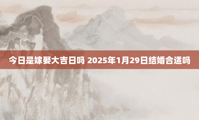 今日是嫁娶大吉日吗 2025年1月29日结婚合适吗结婚是人生中最重要的事情之一,结婚吉日寄托了对美好幸福生活的向往;2025年1月29日结婚好吗?2025年1月29日结婚日子好吗?卦无忧为您提供结婚黄道吉日,欢...2024-12-09