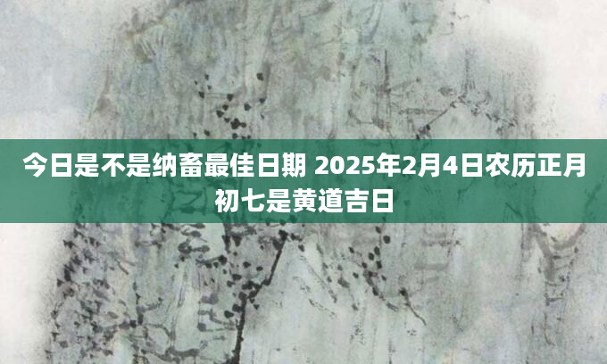 今日是不是纳畜最佳日期 2025年2月4日农历正月初七是黄道吉日当日适合纳畜根据该日的黄历信息分析可得,2025年2月4日为黄道日,黄道日即是民间的黄道吉日,吉日办事可一顺百顺,对事情有着正向积极的促进作用,因此2025年2...2024-12-08