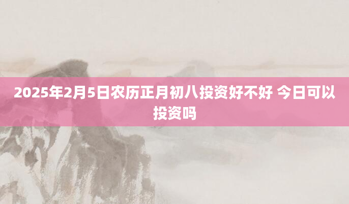2025年2月5日农历正月初八投资好不好 今日可以投资吗适当理性的投资行为是积累财富的必要手段,2025年2月5日投资日子好吗?卦无忧为您提供投资黄道吉日,祝您平安顺利,万事如意。当日不适合投资根据该日的黄历信息分析...2024-12-08