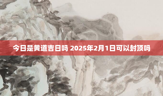 今日是黄道吉日吗 2025年2月1日可以封顶吗封顶,其本指建筑物主体结构已经完工,也指不许超过规定的极点。2025年2月1日封顶好不好?封顶选什么日子好?卦无忧帮您查询适合封顶的日子。当日不适合封顶根据该日...2024-12-08