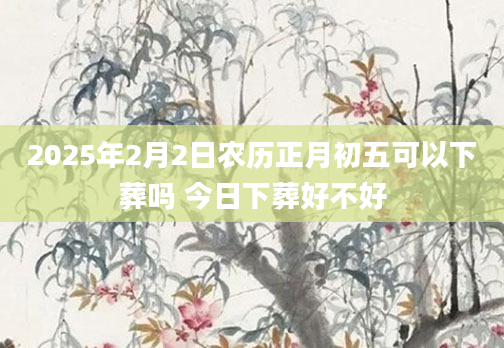2025年2月2日农历正月初五可以下葬吗 今日下葬好不好我国传统文化讲究入土为安,那2025年2月2日是下葬的好日子吗?2025年2月2日下葬吉时是什么时候?卦无忧帮您选择下葬吉时吉日,让已逝之人安定吧。当日不适合下...2024-12-08