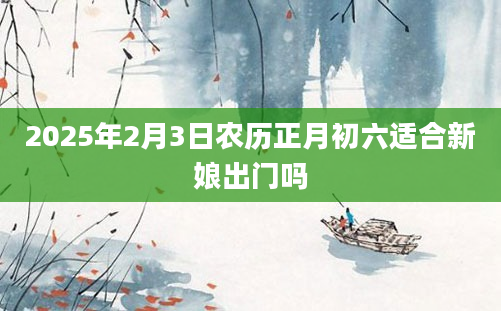 2025年2月3日农历正月初六适合新娘出门吗当日不适合新娘出门根据该日的黄历信息分析可得,2025年2月3日为黑道日,就民间说法来看,黑道日不利行事,若这一日新娘出门,可能会有不好的影响,但黑道日并不是完...2024-12-08