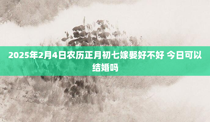 2025年2月4日农历正月初七嫁娶好不好 今日可以结婚吗男娶女嫁,举行结婚大典的吉日,跟自己的伴侣一起生活,是一件美好的事情。2025年2月4日嫁娶好吗?2025年2月4日嫁娶日子好吗?卦无忧为您提供嫁娶黄道吉日,欢...2024-12-08