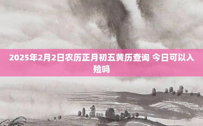 2025年2月2日农历正月初五黄历查询 今日可以入殓吗入殓,又称为入棺、入木、落材,古称大殓,是指将死者移入棺木的过程。那么2025年2月2日入殓好不好?入殓选什么日子好?卦无忧帮您查询适合入殓的日子。当日不适合入...2024-12-08