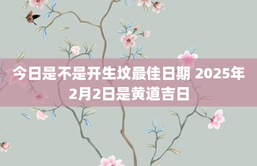 今日是不是开生坟最佳日期 2025年2月2日是黄道吉日当日适合开生坟根据该日的黄历信息分析可得,2025年2月2日为黄道日,黄道日即是民间的黄道吉日,吉日办事可一顺百顺,对事情有着正向积极的促进作用,因此2025年...2024-12-08