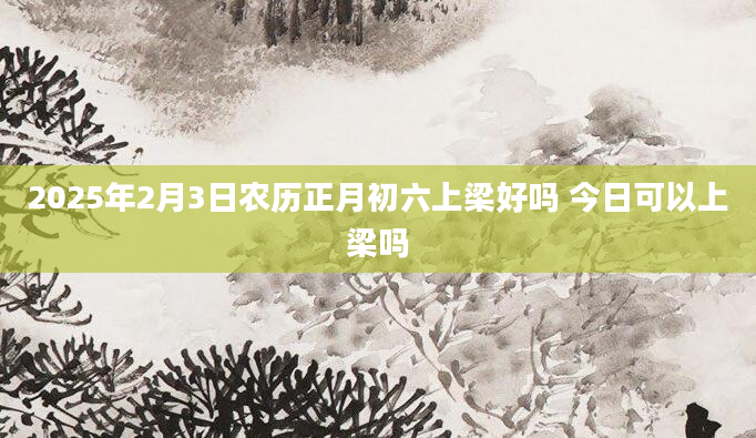 2025年2月3日农历正月初六上梁好吗 今日可以上梁吗上梁主要是指安装建筑物屋顶最高一根中梁的过程。这个过程具有建筑结构上的重要性,2025年2月3日上梁好不好?上梁选什么日子好?卦无忧帮您查询适合上梁的日子。当日...2024-12-08