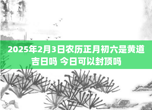 2025年2月3日农历正月初六是黄道吉日吗 今日可以封顶吗封顶,其本指建筑物主体结构已经完工,也指不许超过规定的极点。2025年2月3日封顶好不好?封顶选什么日子好?卦无忧帮您查询适合封顶的日子。当日不适合封顶根据该日...2024-12-08
