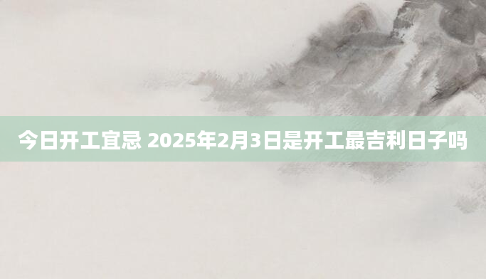 今日开工宜忌 2025年2月3日是开工最吉利日子吗当日不适合开工根据该日的黄历信息分析可得,2025年2月3日为黑道日,就民间说法来看,黑道日不利行事,若这一日开工,可能会有不好的影响,但黑道日并不是完全忌讳开...2024-12-08