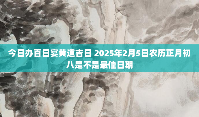 今日办百日宴黄道吉日 2025年2月5日农历正月初八是不是最佳日期当日适合办百日宴根据该日的黄历信息分析可得,2025年2月5日为黄道日,黄道日即是民间的黄道吉日,吉日办事可一顺百顺,对事情有着正向积极的促进作用,因此2025...2024-12-08