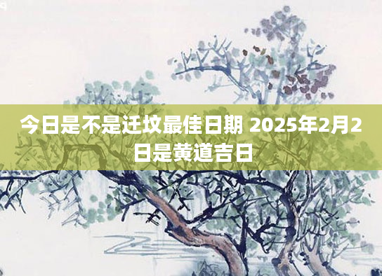 今日是不是迁坟最佳日期 2025年2月2日是黄道吉日当日适合迁坟根据该日的黄历信息分析可得,2025年2月2日为黄道日,黄道日即是民间的黄道吉日,吉日办事可一顺百顺,对事情有着正向积极的促进作用,因此2025年2...2024-12-08最新文章