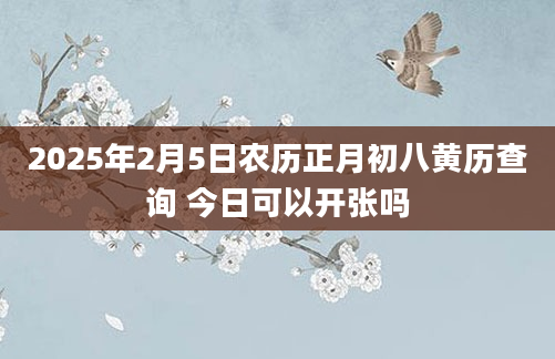 2025年2月5日农历正月初八黄历查询 今日可以开张吗新建商店或企业开始营业:这是开张最常见的含义,那2025年2月5日开张好不好?2025年2月5日开张吉时是什么时候?卦无忧为您提供开张吉日吉时查询,把握天时,开...2024-12-08