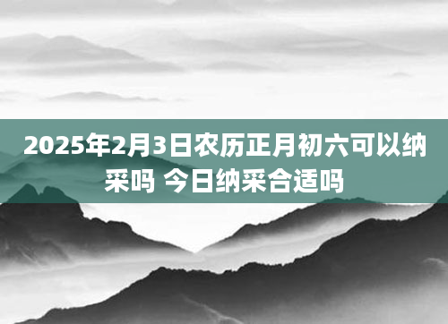 2025年2月3日农历正月初六可以纳采吗 今日纳采合适吗纳采是古代汉族婚姻风俗。流行于全国许多地区。“六礼”中的第一礼。那么2025年2月3日纳采的日子好不好?2025年2月3日纳采的吉时是几点呢?卦无忧为您提供纳采...2024-12-08