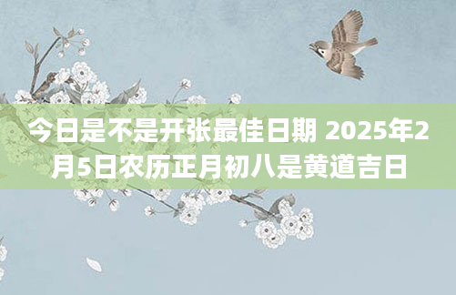 今日是不是开张最佳日期 2025年2月5日农历正月初八是黄道吉日当日适合开张根据该日的黄历信息分析可得,2025年2月5日为黄道日,黄道日即是民间的黄道吉日,吉日办事可一顺百顺,对事情有着正向积极的促进作用,因此2025年2...2024-12-08