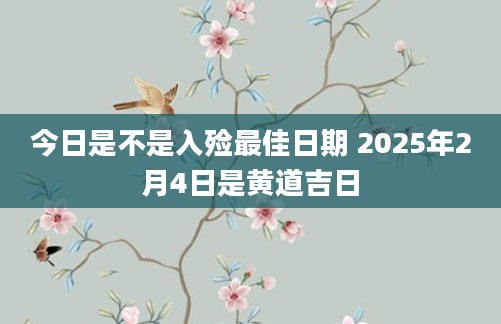 今日是不是入殓最佳日期 2025年2月4日是黄道吉日当日适合入殓根据该日的黄历信息分析可得,2025年2月4日为黄道日,黄道日即是民间的黄道吉日,吉日办事可一顺百顺,对事情有着正向积极的促进作用,因此2025年2...2024-12-08