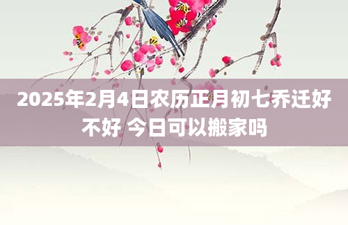 2025年2月4日农历正月初七乔迁好不好 今日可以搬家吗搬家意味着开启新的生活,同时风水和运势也可能发生一些变化,2025年2月4日宜搬家吗?2025年2月4日搬家日子好不好?卦无忧为您提供搬家吉日吉时,希望对您有所...2024-12-08最新文章