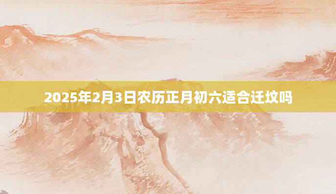 2025年2月3日农历正月初六适合迁坟吗当日不适合迁坟根据该日的黄历信息分析可得,2025年2月3日为黑道日,就民间说法来看,黑道日不利行事,若这一日迁坟,可能会有不好的影响,但黑道日并不是完全忌讳迁...2024-12-08