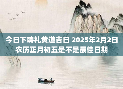 今日下聘礼黄道吉日 2025年2月2日农历正月初五是不是最佳日期当日适合下聘礼根据该日的黄历信息分析可得,2025年2月2日为黄道日,黄道日即是民间的黄道吉日,吉日办事可一顺百顺,对事情有着正向积极的促进作用,因此2025年...2024-12-08
