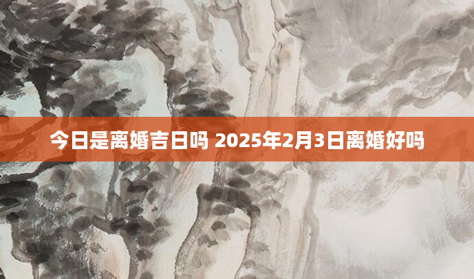 今日是离婚吉日吗 2025年2月3日离婚好吗当日不适合离婚根据该日的黄历信息分析可得,2025年2月3日为黑道日,就民间说法来看,黑道日不利行事,若这一日离婚,可能会有不好的影响,但黑道日并不是完全忌讳离...2024-12-08
