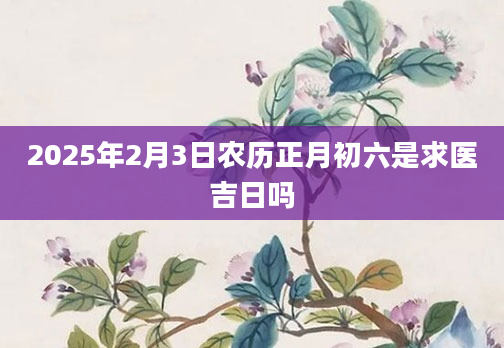 2025年2月3日农历正月初六是求医吉日吗当日不适合求医根据该日的黄历信息分析可得,2025年2月3日为黑道日,就民间说法来看,黑道日不利行事,若这一日求医,可能会有不好的影响,但黑道日并不是完全忌讳求...2024-12-08