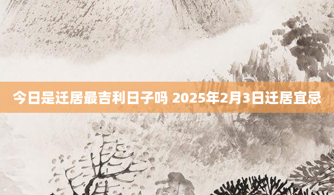 今日是迁居最吉利日子吗 2025年2月3日迁居宜忌当日不适合迁居根据该日的黄历信息分析可得,2025年2月3日为黑道日,就民间说法来看,黑道日不利行事,若这一日迁居,可能会有不好的影响,但黑道日并不是完全忌讳迁...2024-12-08