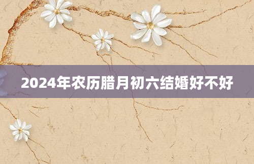 2024年农历腊月初六结婚好不好婚姻是一个人一辈子的大事,所以对待结婚的任何细节都要小心谨慎,不能草率。而选择一个良辰吉日作为结婚的首要环节是少不了的,它能给新郎和新娘带来好运气和好兆头,提升...2024-12-04