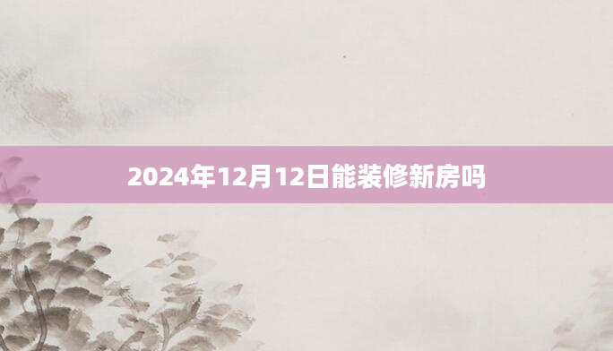 2024年12月12日能装修新房吗在装修之前,选择一个好的日子来对我们的生活有益,因为我们都希望自己和家人的家庭是幸福和谐的,这可以使事情顺利进行,并带来稳定的经济来源。所以人们需要花费更多的时...2024-12-04