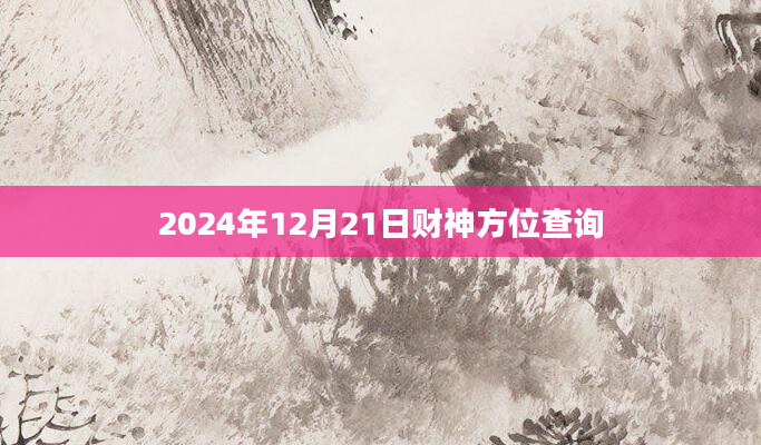 2024年12月21日财神方位查询在我国民间,财神方位的确定是十分讲究的一件事。因为如果能够知道每一天的财神方位所在哪个位置的话,就预示着财运的发展方向,也会对自己未来的生活产生积极的影响,这有...2024-12-04