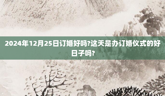 2024年12月25日订婚好吗?这天是办订婚仪式的好日子吗?我们必须考虑订婚吉日的因素,因为选择好日子订婚的话,可以给我们带来好的预示和帮助,这对未来生活的发展将起到非常重要的作用,因此人们在做大事时一定要注意吉祥的日子...2024-12-04