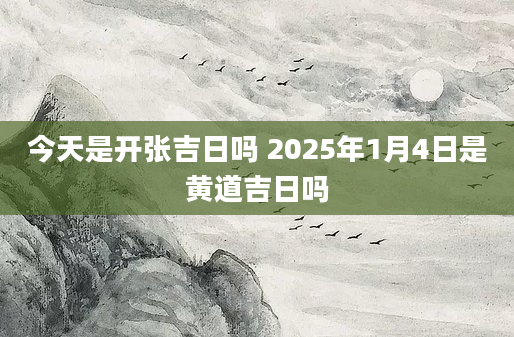 今天是开张吉日吗 2025年1月4日是黄道吉日吗新建商店或企业开始营业:这是开张最常见的含义,那2025年1月4日开张好不好?2025年1月4日开张吉时是什么时候?卦无忧为您提供开张吉日吉时查询,把握天时,开...2024-11-30