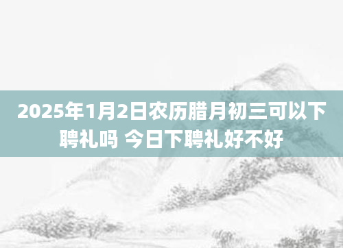 2025年1月2日农历腊月初三可以下聘礼吗 今日下聘礼好不好下聘礼即行聘,是指旧俗订婚时,男家向女家下定礼。那么2025年1月2日下聘礼的日子好不好?2025年1月2日下聘礼的吉时是几点呢?卦无忧为您提供下聘礼吉日吉时,...2024-11-30