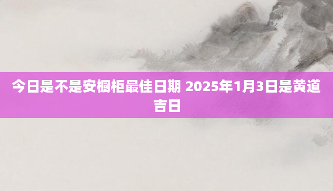 今日是不是安橱柜最佳日期 2025年1月3日是黄道吉日当日适合安橱柜根据该日的黄历信息分析可得,2025年1月3日的黄历信息“宜”中有安橱柜这一事项,吉日做事可达到事半功倍的效果,因此2025年1月3日适合安橱柜,...2024-11-30
