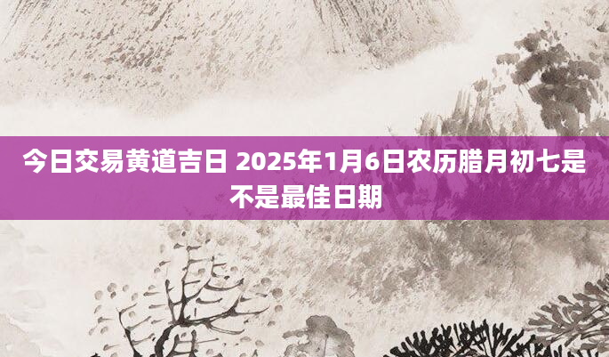 今日交易黄道吉日 2025年1月6日农历腊月初七是不是最佳日期当日适合交易根据该日的黄历信息分析可得,2025年1月6日为黄道日,黄道日即是民间的黄道吉日,吉日办事可一顺百顺,对事情有着正向积极的促进作用,因此2025年1...2024-11-30