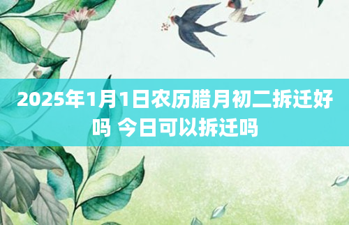 2025年1月1日农历腊月初二拆迁好吗 今日可以拆迁吗拆迁在黄历中指的是适宜拆除或改建破旧房屋的日子,那2025年1月1日拆迁好不好?2025年1月1日是拆迁吉日良辰吗?卦无忧为您提供拆迁吉日吉时,可收藏查看哦!当...2024-11-30