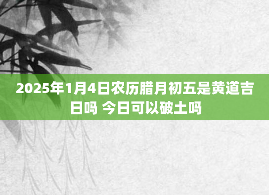 2025年1月4日农历腊月初五是黄道吉日吗 今日可以破土吗破土指春天土地解冻后翻松泥土,开始耕种。2025年1月4日破土是良辰吉日吗?2025年1月4日破土日子好吗?卦无忧为您提供破土吉日吉时,祝您万事如意!当日不适合...2024-11-30