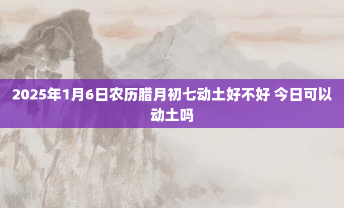 2025年1月6日农历腊月初七动土好不好 今日可以动土吗动土对也代表着建筑开始动工的意义,一定要选个好日子,以免犯了风水忌讳。那2025年1月6日能动土吗?2025年1月6日动土好不好?卦无忧为您提供动土吉日查询。当...2024-11-30