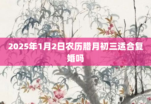 2025年1月2日农历腊月初三适合复婚吗当日不适合复婚根据该日的黄历信息分析可得,2025年1月2日为黑道日,就民间说法来看,黑道日不利行事,若这一日复婚,可能会有不好的影响,但黑道日并不是完全忌讳复...2024-11-30