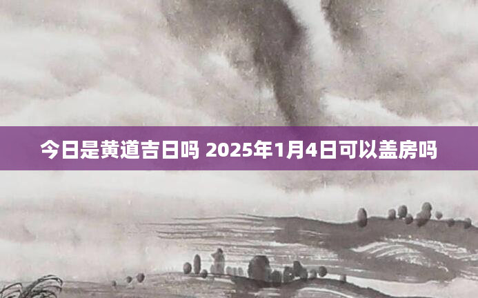 今日是黄道吉日吗 2025年1月4日可以盖房吗选择一个良辰吉日来盖房是一件重要的事情,2025年1月4日盖房好不好?盖房选什么日子好?卦无忧帮您查询适合盖房的日子。当日不适合盖房根据该日的黄历信息分析可得,...2024-11-30