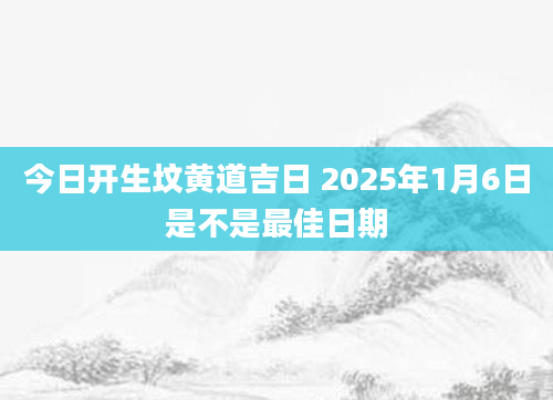 今日开生坟黄道吉日 2025年1月6日是不是最佳日期当日适合开生坟根据该日的黄历信息分析可得,2025年1月6日为黄道日,黄道日即是民间的黄道吉日,吉日办事可一顺百顺,对事情有着正向积极的促进作用,因此2025年...2024-11-30