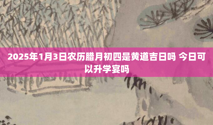 2025年1月3日农历腊月初四是黄道吉日吗 今日可以升学宴吗谢师宴。根据查询日历网得知,升学宴在黄历中叫谢师宴。升学成功主要的功劳还是老师的辛勤教诲,因此升学宴这个重要的庆祝活动,是为了感谢老师。那2025年1月3日能办...2024-11-30